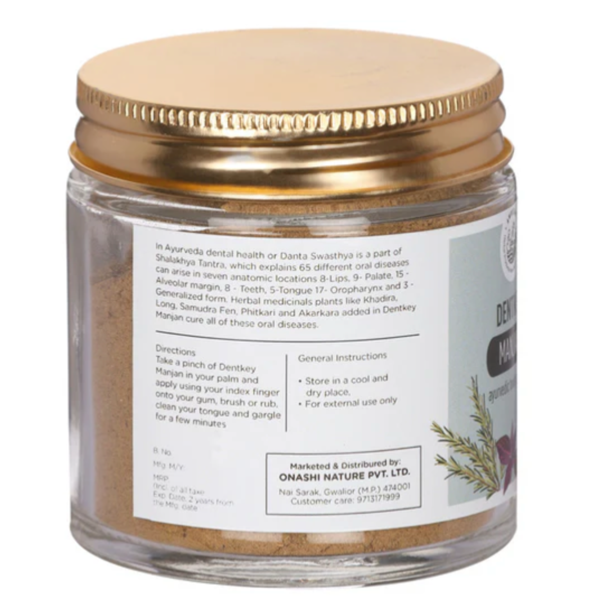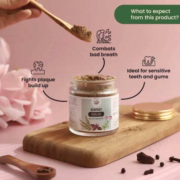 • Ayurvedic Formulation: This tooth powder is crafted using time-honored Ayurvedic principles, blending botanicals and herbs known for their oral health benefits.
