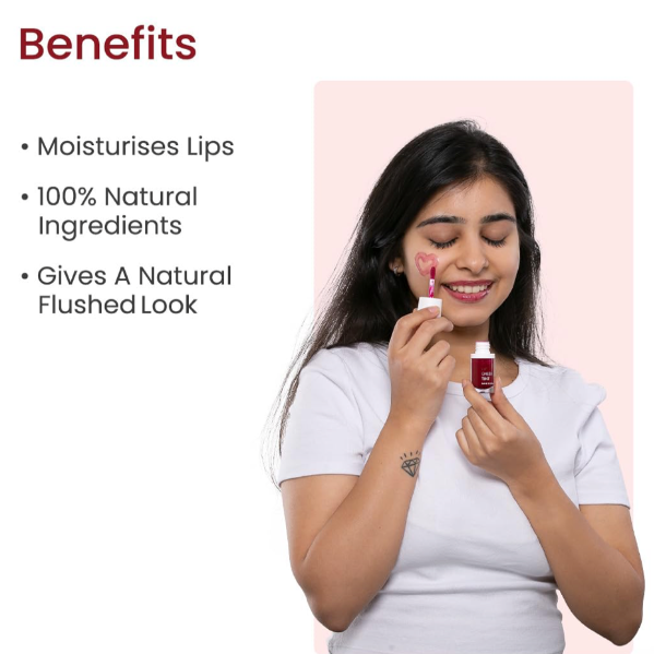 • For Cheeks: Dot the tint onto the apples of your cheeks and blend using your fingertips or a makeup sponge.