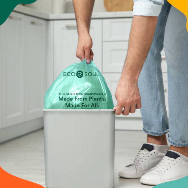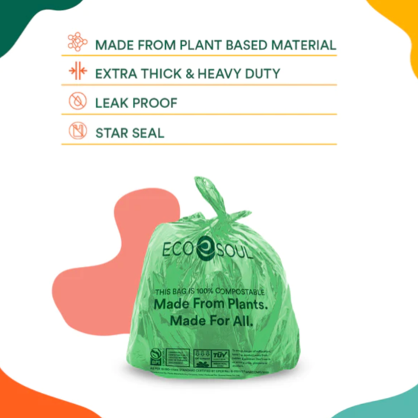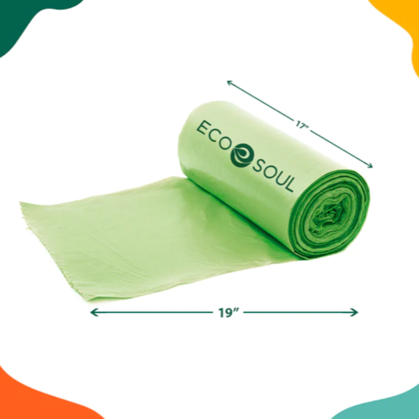 Eco Soul's Plant-Based Garbage Bag | Compostable Trash Bag | Small | 17x19 inch | Ecofriendly Cleaning Essentials | SustainGo