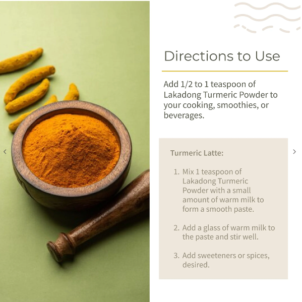• Culinary Use: Add 1-2 teaspoons of Ecotyl's Lakadong Turmeric Powder to your curries, soups, smoothies, or golden milk for enhanced flavor and health benefits.