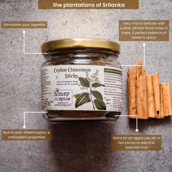 • Immunity Booster: Rich in antioxidants, Ceylon cinnamon strengthens the immune system and helps protect against infections and illnesses.