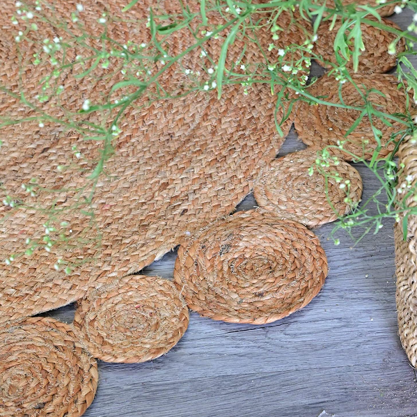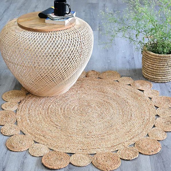 • Handwoven Craftsmanship: Imsid's Home Handwoven Jute Round Rug is meticulously crafted by skilled artisans, showcasing intricate braiding and high-quality workmanship.