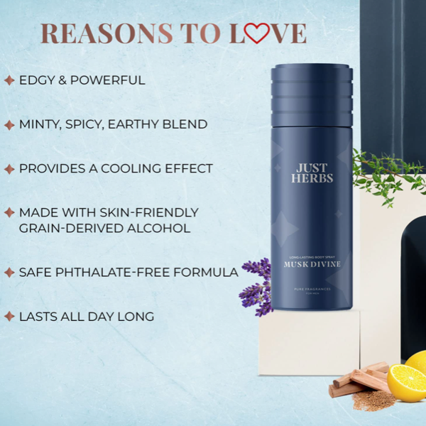 Just Herbs Natural Deodorant for Men | Long Lasting, Refreshing Body Spray | Phthalate-Free Formula | Natural beauty with SustainGo