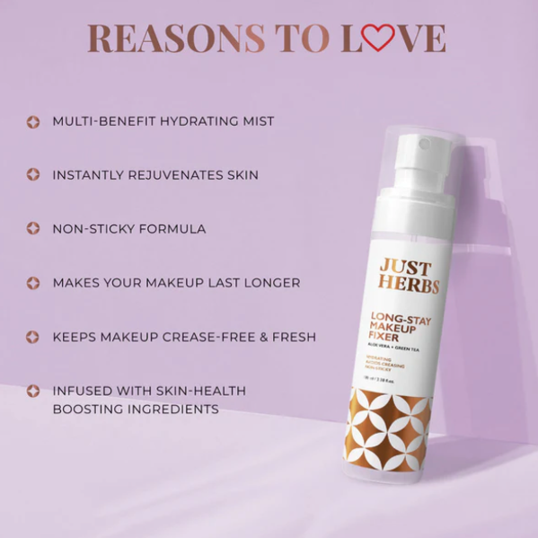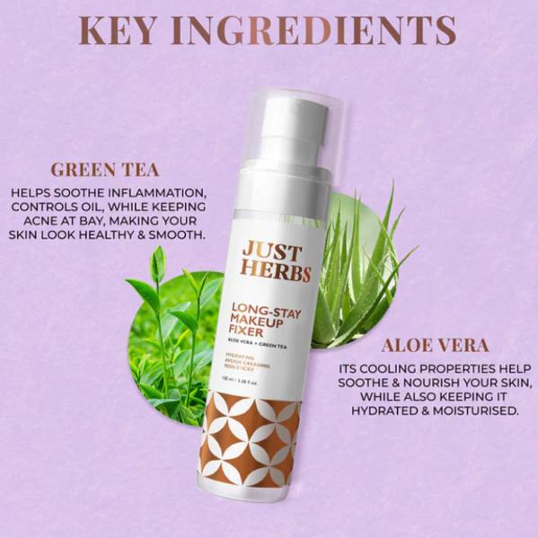 Just Herbs's Makeup Fixer Spray | Long-Stay | Aloe Vera & Green Tea | 100 ml | Natural beauty