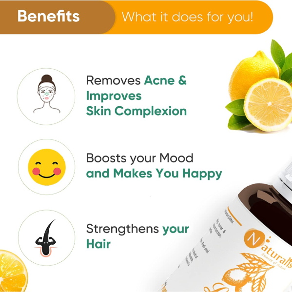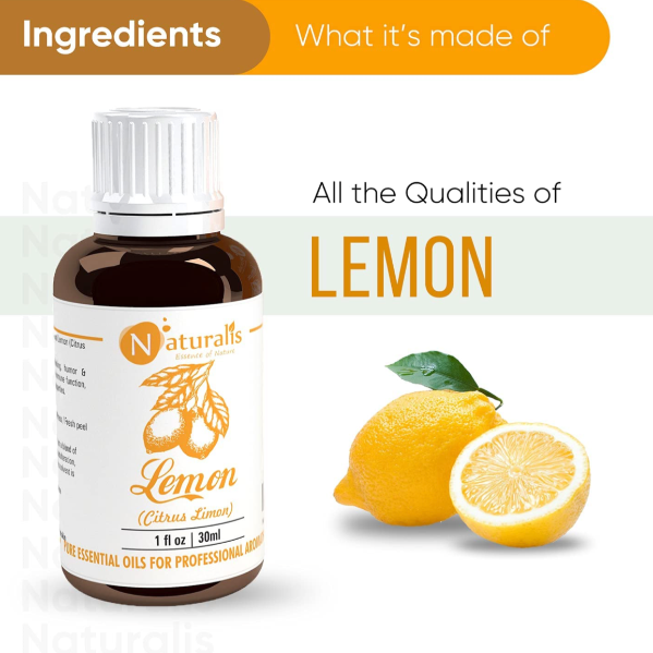 Description: Naturalis's 100% Pure Lemon Essential Oil is a vibrant elixir derived from cold-pressed lemon peels. Renowned for its skin-brightening properties, lemon oil effectively reduces the appearance of skin pigmentation, dark spots, and blemishes, promoting a clearer and more even complexion. When used in facial care routines, it revitalizes the skin, leaving it with a radiant glow and promoting overall skin health. Additionally, lemon oil nourishes the scalp, strengthens hair follicles, and adds shine to the hair, making it a versatile ingredient for hair care. In aromatherapy, its refreshing citrus scent uplifts the mood, boosts energy levels, and promotes mental clarity, making it perfect for revitalizing the senses. This therapeutic-grade essential oil is cold-pressed and undiluted, ensuring maximum potency and efficacy in every drop. Embrace your natural glow with Naturalis's Pure Lemon Essential Oil.