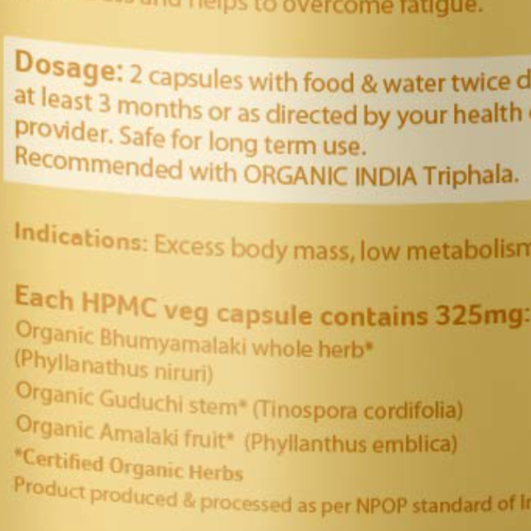 • Metabolism and Elimination: Organic India's Weight Balance Capsules are expertly formulated to improve metabolism and elimination, supporting natural weight management.