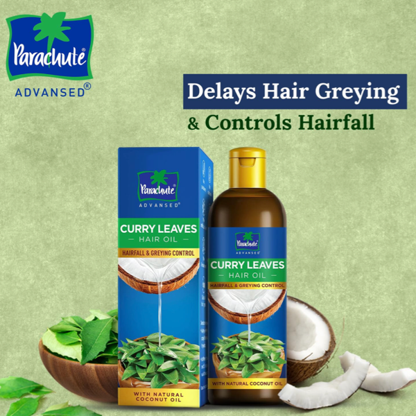 • Natural Ingredients: Made with natural coconut oil and vitamin E, Parachute Advansed Curry Leaves Hair Oil offers gentle care for your hair, free from harsh chemicals.