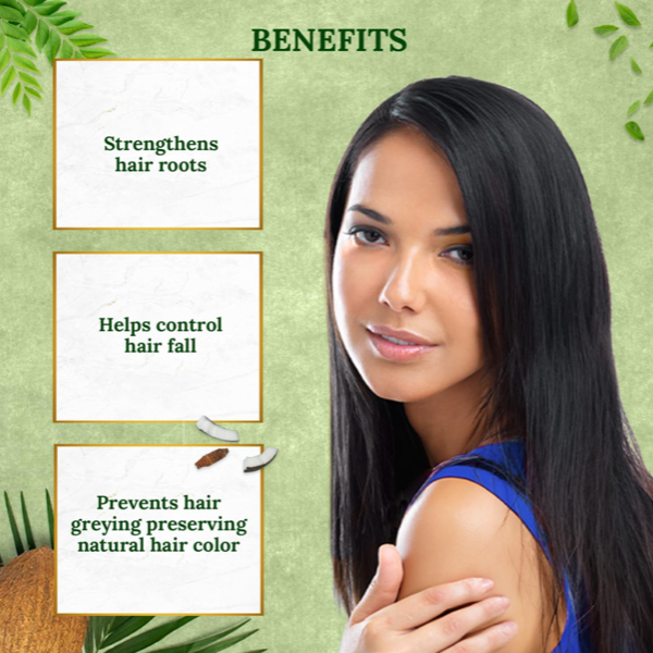 • Greying Control: Enriched with the goodness of curry leaves, it also aids in controlling premature greying, maintaining your hair's natural color.