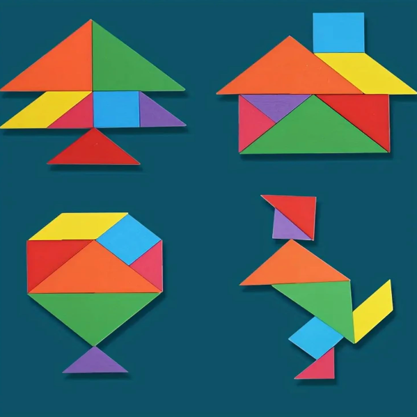 • Square Tangram: Encourage your child to use the tangram pieces to create various shapes and figures, enhancing creativity and problem-solving skills.