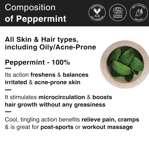 Description: Soulflower's Pure Lavender & Peppermint Essential Oil Combo is a dynamic duo crafted for holistic beauty and well-being. Lavender oil, known for its calming and soothing properties, promotes healthy hair growth and nourishes the scalp, reducing hair fall and enhancing hair thickness. Peppermint oil provides a refreshing and cooling sensation, invigorating the scalp and aiding in hair fall control. In addition to hair care benefits, lavender oil soothes skin irritations and promotes skin health, while peppermint oil helps in acne control with its antimicrobial properties. This set of 100% pure, natural, organic certified, and undiluted essential oils is a must-have for your hair and skincare rituals. Experience natural beauty and nourishment with Soulflower's Pure Lavender & Peppermint Essential Oil Combo.