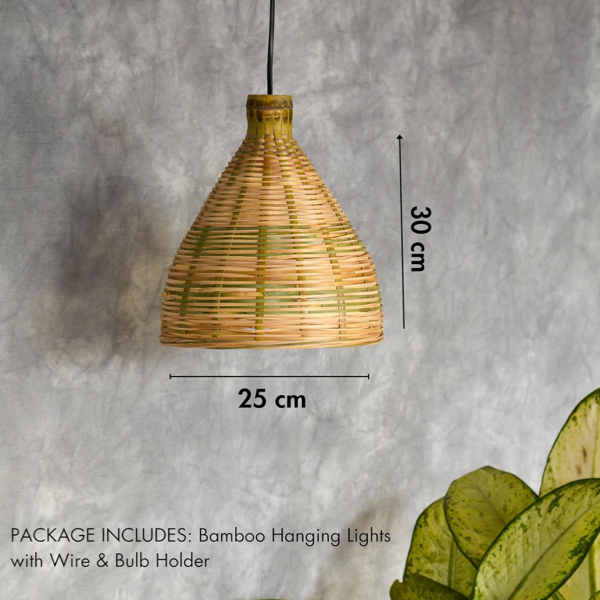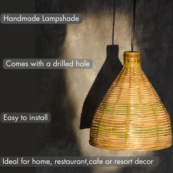 • Natural Beige Aesthetic: Add a touch of organic charm to your living space with SustainGo's handmade hanging lamp crafted from sustainable bamboo cane in a natural beige hue.