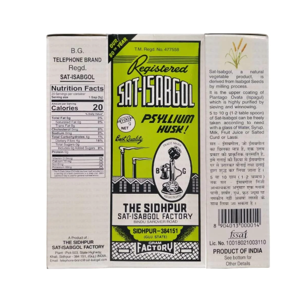 Description: Telephone Brand's Sat-Isabgol Psyllium Husk offers natural relief for digestive discomfort, providing gentle yet effective support for constipation and overall digestive health. Sourced from Sidhpur and graded A++, our psyllium husk ensures the highest quality and purity, meeting the stringent standards set for digestive wellness. With its ability to promote regularity and smooth bowel movements, Sat-Isabgol Psyllium Husk is a trusted choice for individuals seeking natural relief from digestive issues. Experience the gentle power of nature with Telephone Brand's Sat-Isabgol Psyllium Husk and enjoy digestive comfort with ease.
