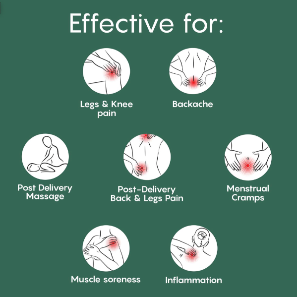 • Pain Relief: Formulated to provide natural relief from back, knee, muscle pain, menstrual cramps, and postpartum recovery discomfort.