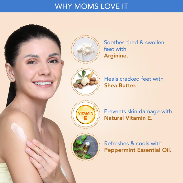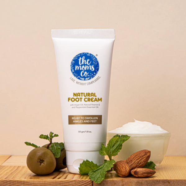 The Moms Co.'s Natural Foot Cream for Mom to be & New mothers | With Shea Butter, Argon oil, Vit E & Peppermint Essential Oil Relief for Swollen Ankles and Feet | 50 g