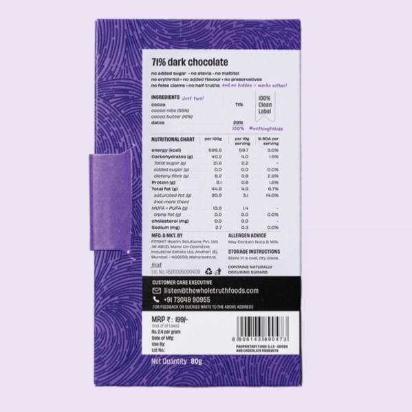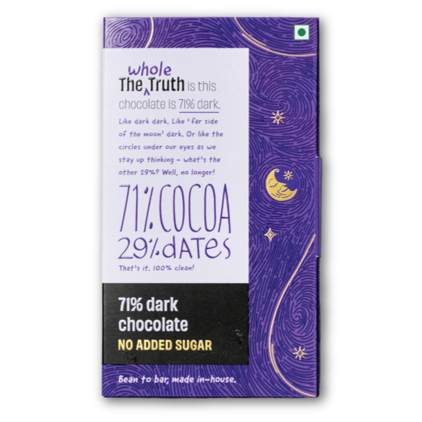 The Whole Truth's 71% Dark Chocolate- Cocoa, Dates | Gluten free, Plant based, Rich in Antioxidants | Aids in Digestive Wellness Heart Health | 80 gm | Pack of 3