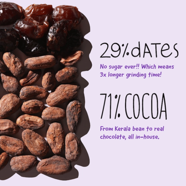 • Natural Sweetness: Sweetened with dates, this chocolate offers a natural and healthier alternative to refined sugars.