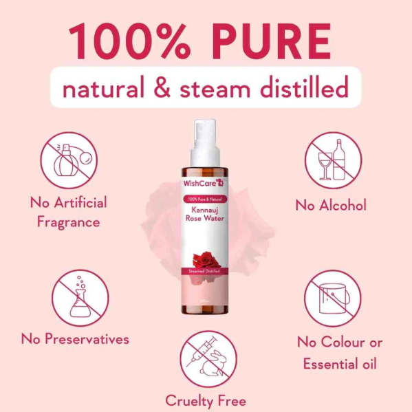 WishCare's 100% Pure & Natural Rose Water | For Skin, Face & Hair - Steam Distilled - Kannauj Gulab Jal - Spray Skin Toner - Free From Paraben, Alcohol & Chemicals | 200 ml