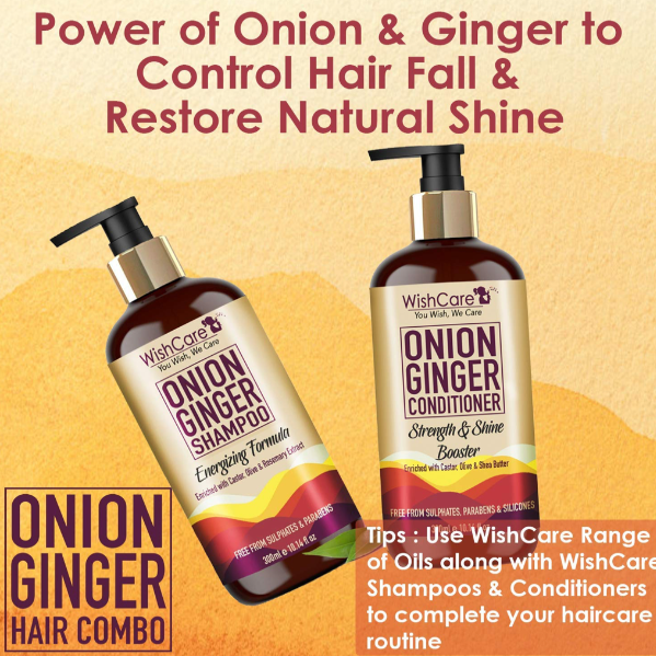 WishCare's Red Onion Ginger Shampoo & Conditioner Kit - Free from Mineral Oils, Sulphates & Parabens| Promotes healthy strong hair | Natural ingredients | Strength & shine booster | 300 ml each|